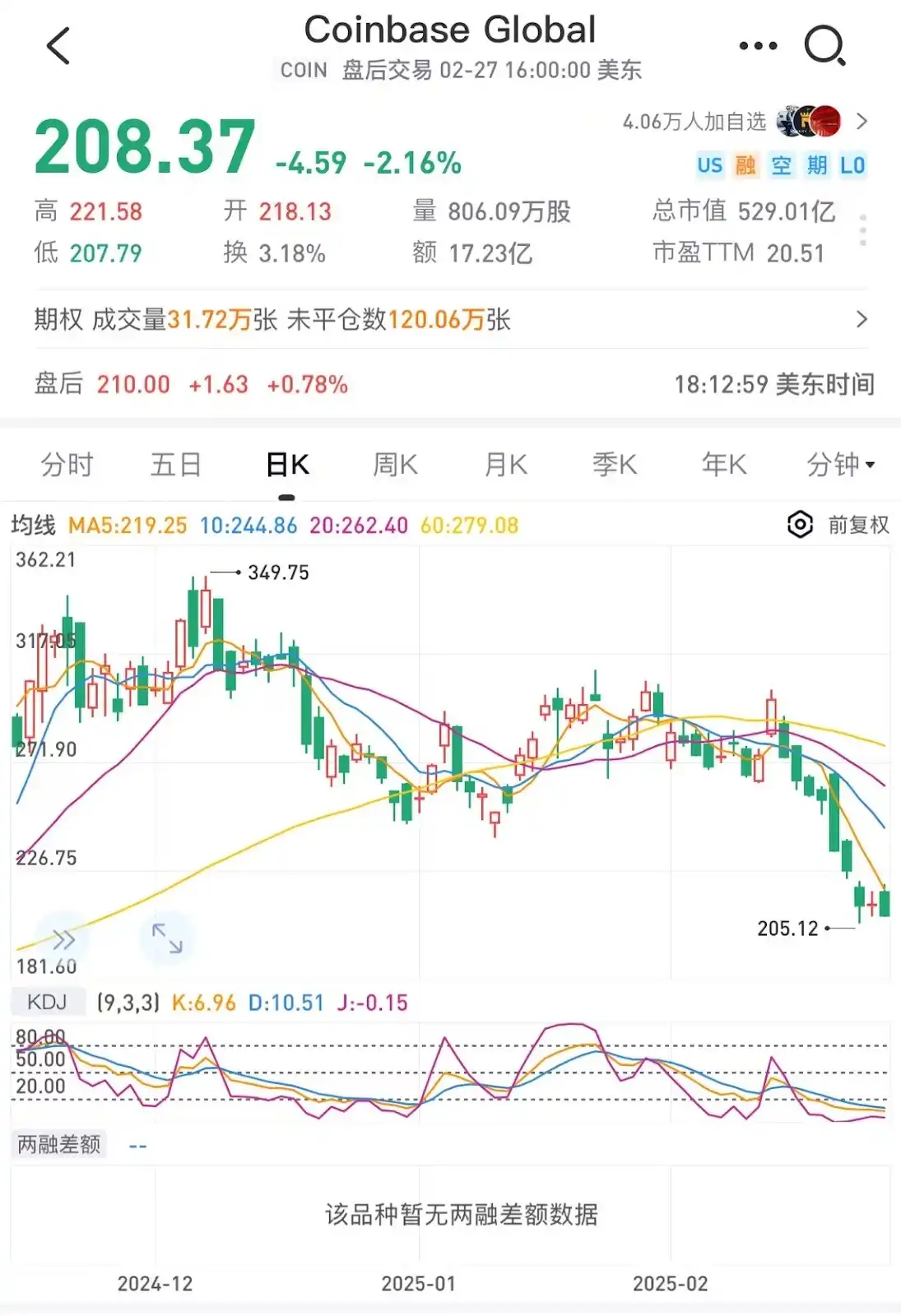 特别是 Coinbase,尽管 2 月 13 日发布的财报显示 2024 年业绩前景良好,但股价仍在过去三周内累计下跌超过 30%。