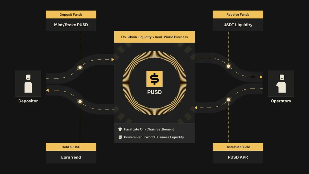 - 储户— 存入 USDT,接收 PUSD,并将其质押为 sPUSD 以获取收益。