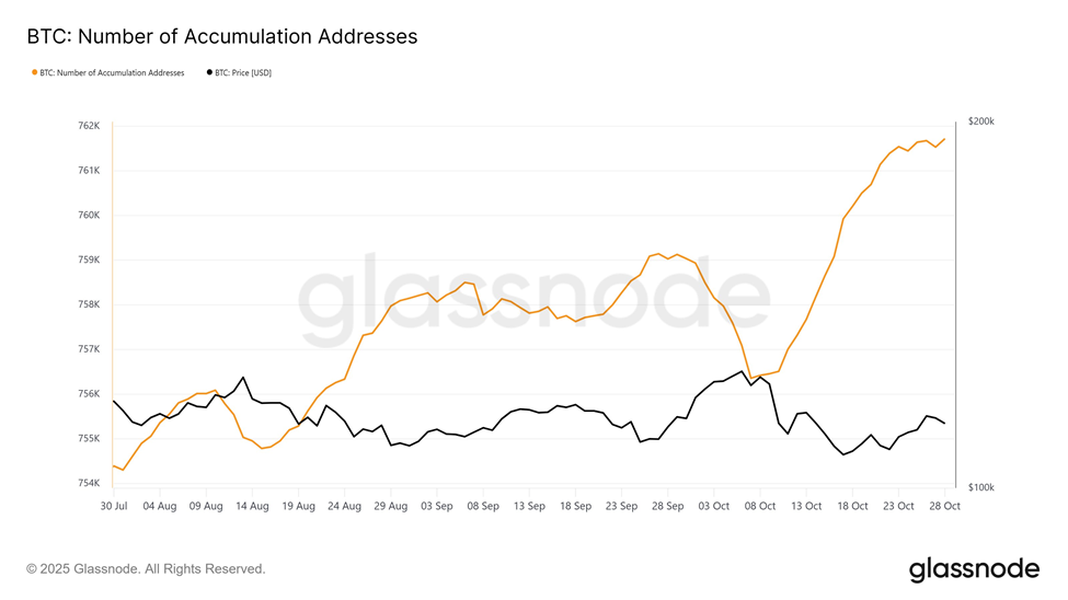 10 月 10 日闪崩之后的这波积累表明,比特币价格可能正在为需求冲击做准备。
