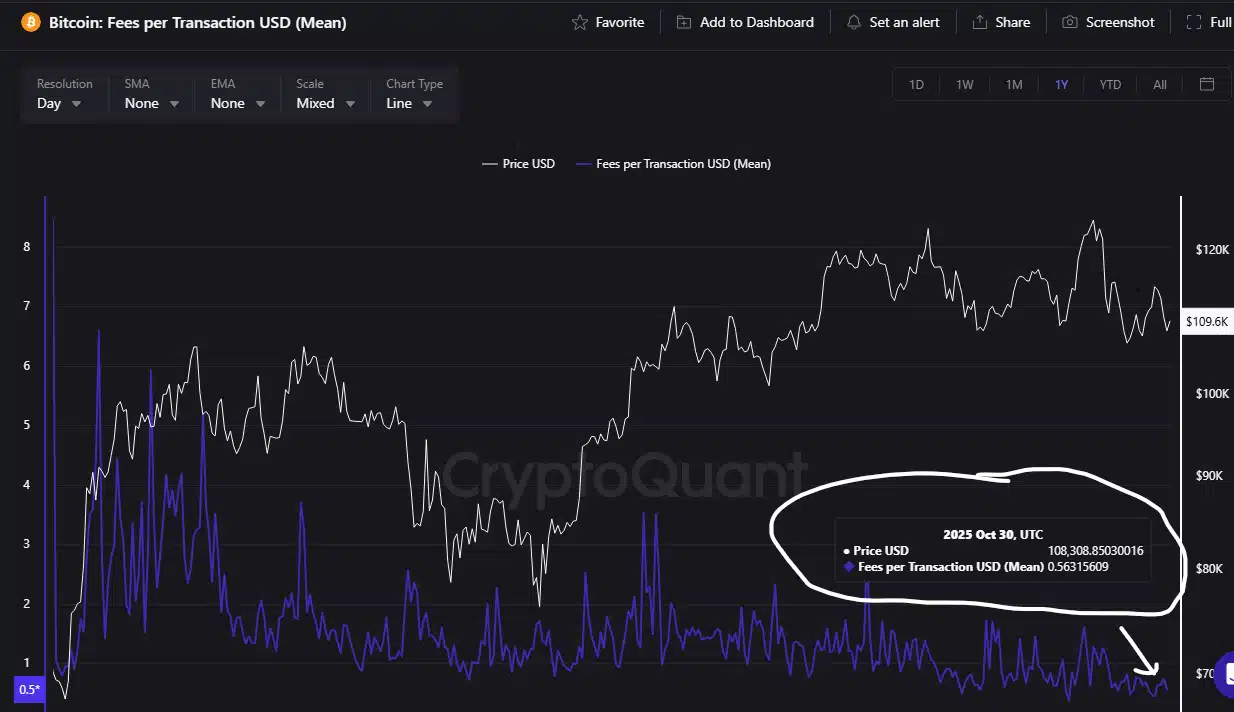 同期交易费用从 8.44 美元大幅下降至 0.56 美元,表明部分区块被填满,零售用户活动减少。