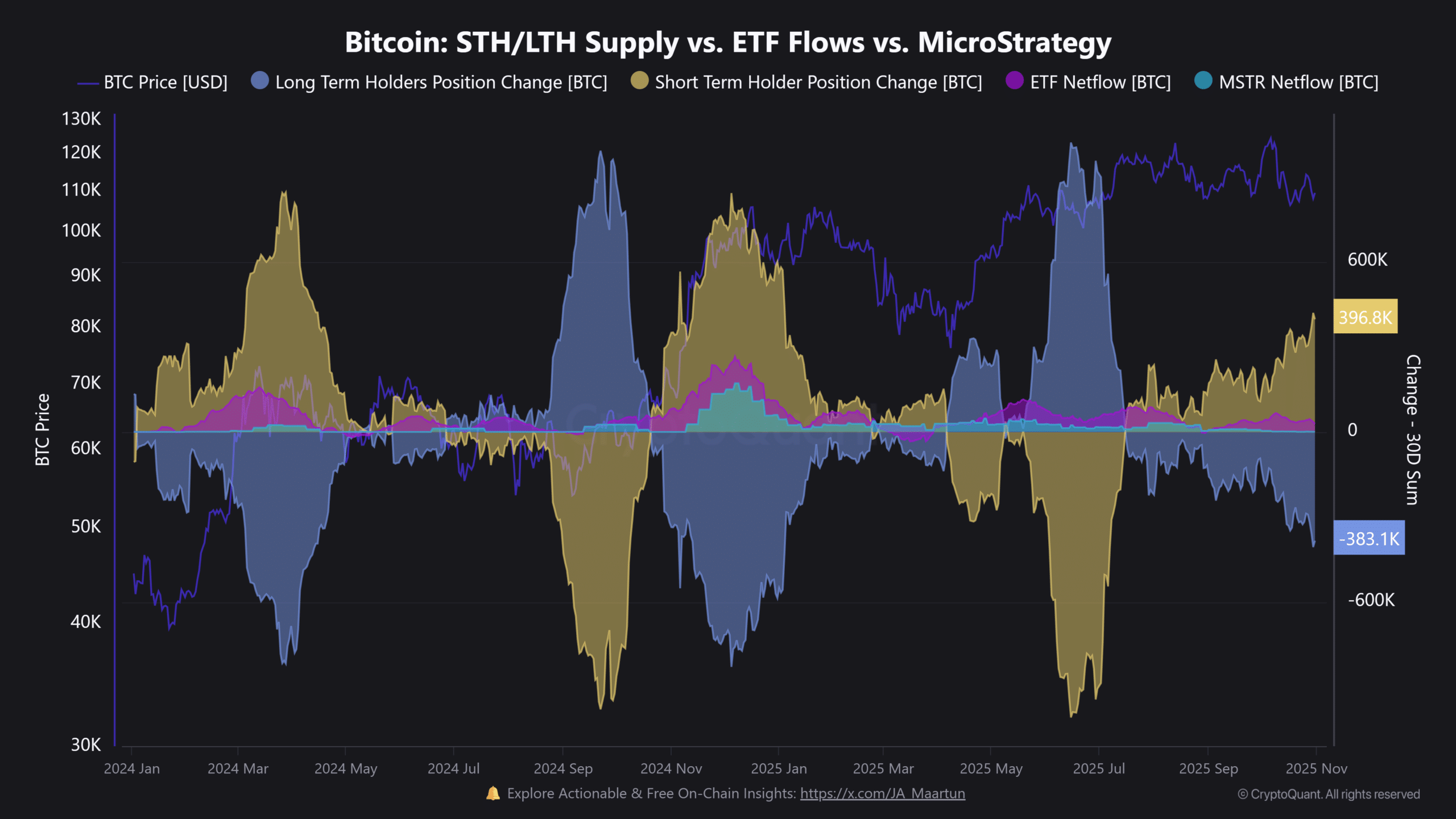 事实上,LTH 在下半年一直在抛售比特币,仅 10 月份就抛售了 38.3 万枚比特币(约 420 亿美元)。超越ETF需求。