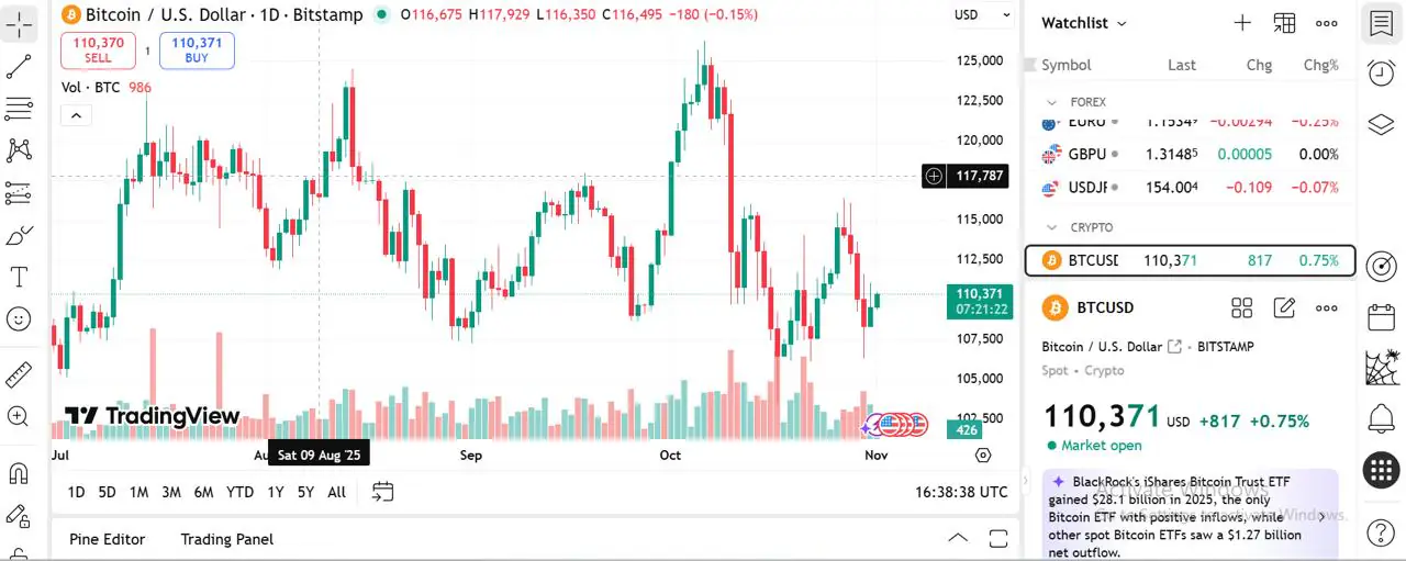 经过一周稳定的资金流入和充裕的流动性,比特币价格已回升至 11 万美元附近。市场深度依然强劲,现货需求旺盛。
