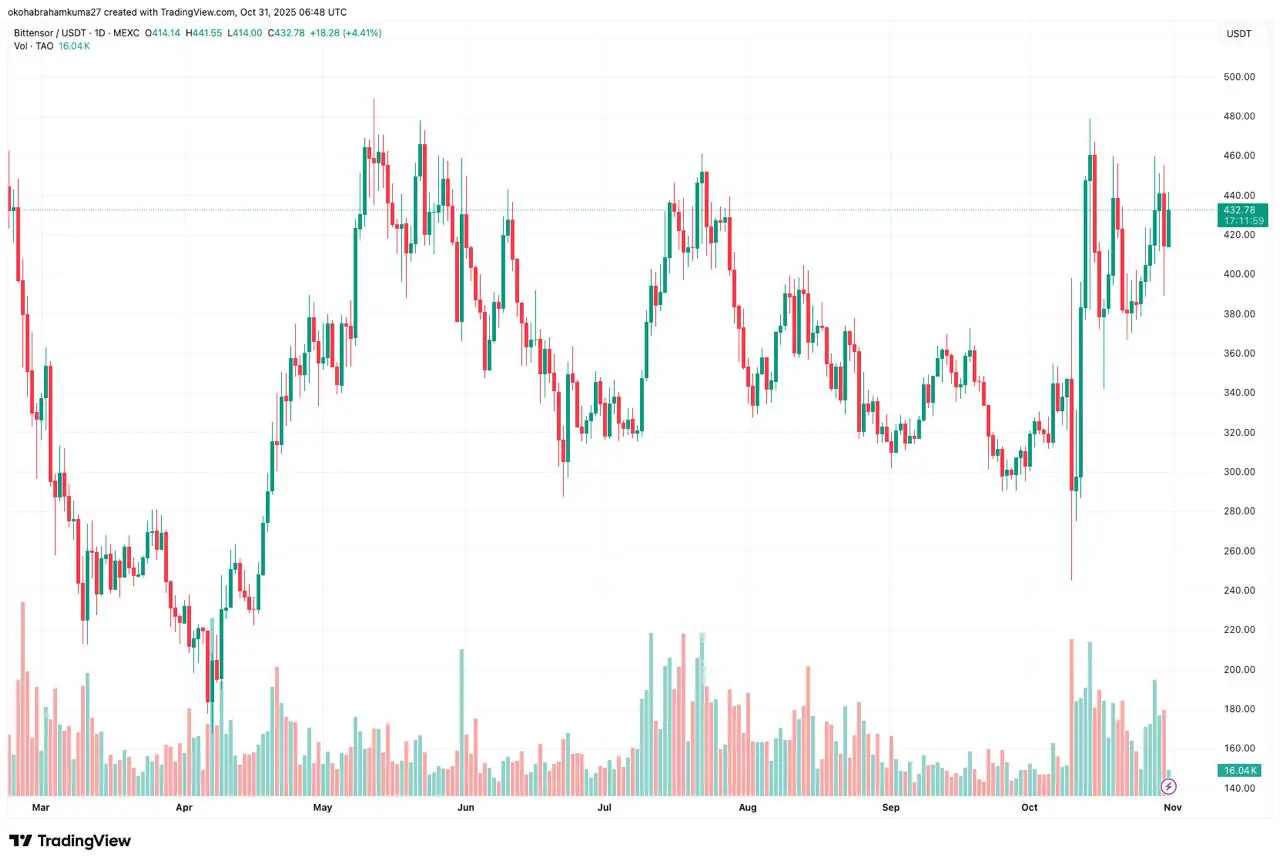Bittensor (TAO) 被许多人认为是值得购买的顶级人工智能加密货币之一。截至 10 月 31 日,它拥有……收益10%过去一周,该股表现优于大盘。其技术面依然看涨,并受到机构投资者兴趣日益浓厚的支撑。新增质押Bittensor ETP (STAO) 已设置为列出该项目于 11 月 19 日在瑞士证券交易所上市,进一步提升了该项目的信誉度。