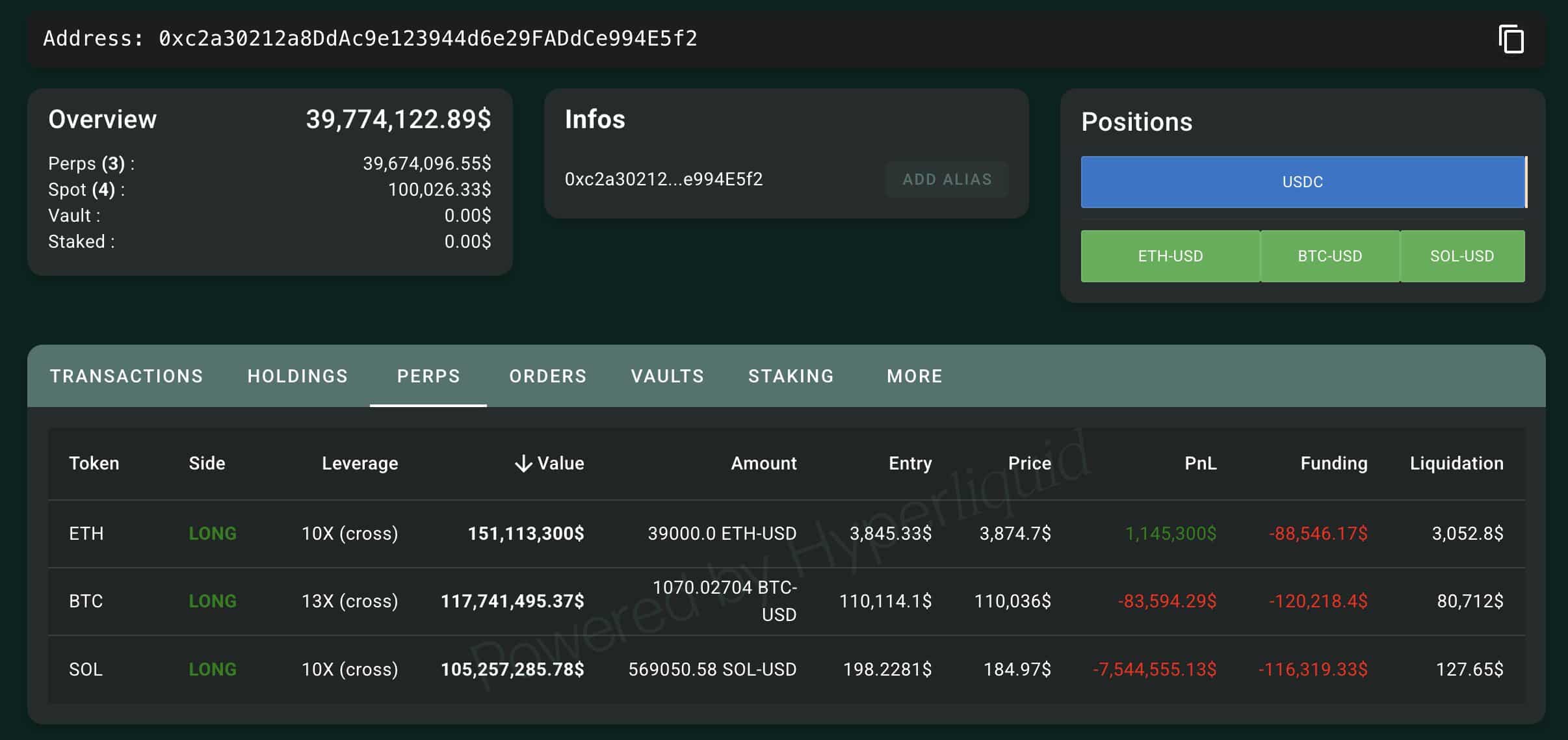 一位拥有 100% 交易记录的顶级交易员持有 39,000 个 ETH 多头头寸(价值 1.51 亿美元)。
