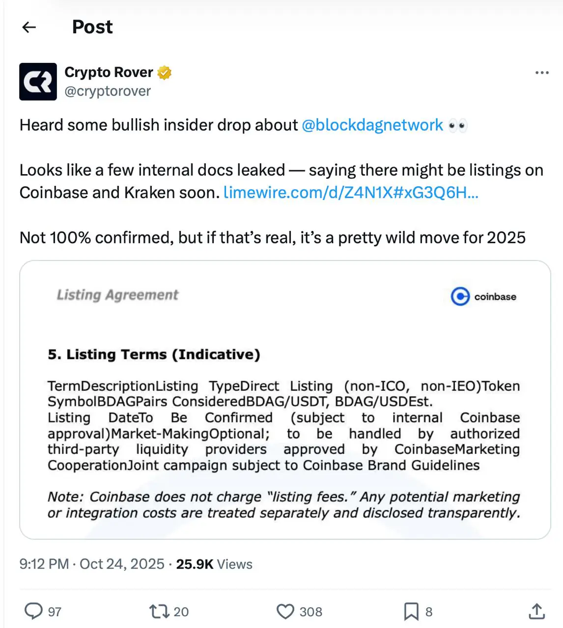 这似乎正在成为现实。Crypto Rover 最近泄露的信息显示,一些看似机密的文件指向一项重大突破。BlockDAG(BDAG)这些文件表明,BDAG已开始为在Coinbase和Kraken上线做准备。如果成功,BDAG有望从普通的预售成功项目跃升为2025年加密货币领域新领军者的有力竞争者。