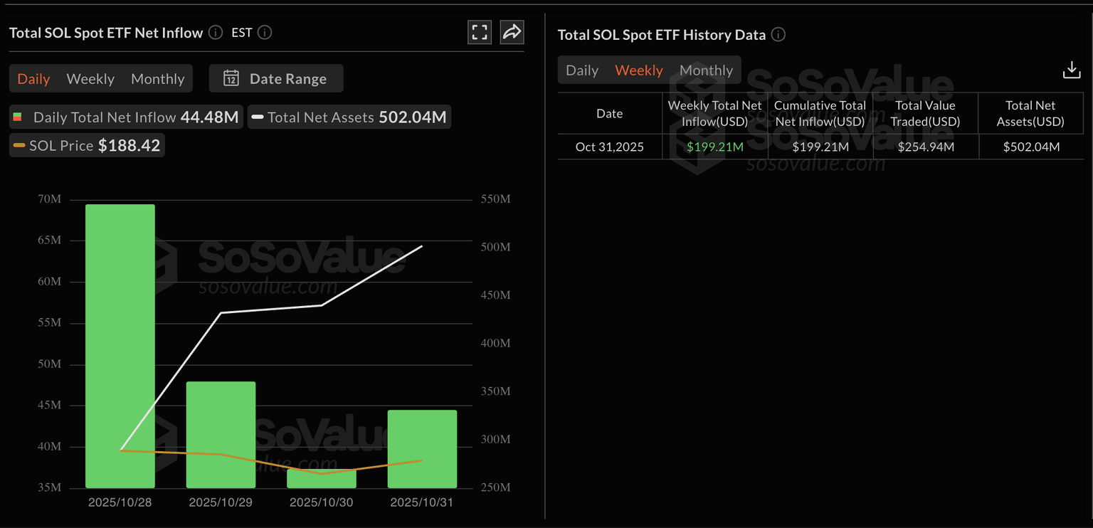 美国SOL现货ETF资金流入。数据来源:Sosovalue。