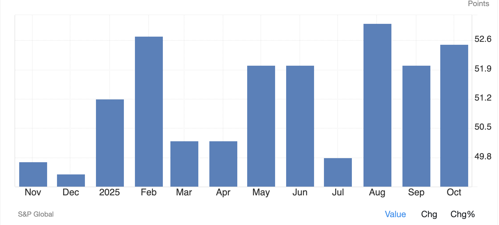 然而,10月份的调查结果令人难以乐观。工厂似乎陷入了订单放缓、价格不稳定和供应挑战的困境——这些都是工业经济停滞不前的因素。除非需求回升或贸易政策趋于稳定,否则制造业的低迷状态可能会持续到明年。