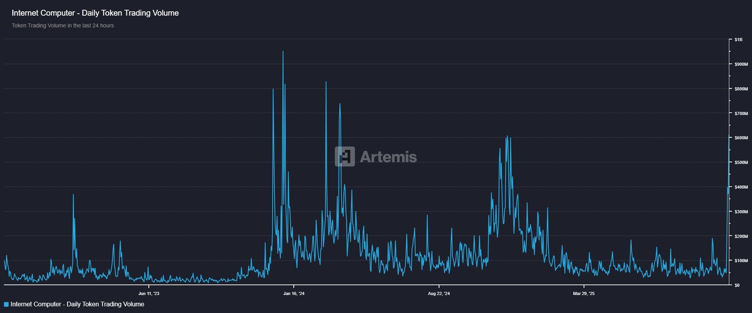Artemis的每日代币交易量表明,ICP生态系统的日总交易量周二达到6.72亿美元,创下年内新高,也是自2024年5月以来的最高水平。交易量的增长表明交易者的兴趣激增。流动性在互联网计算机产业链中,增强了其看涨情绪前景.