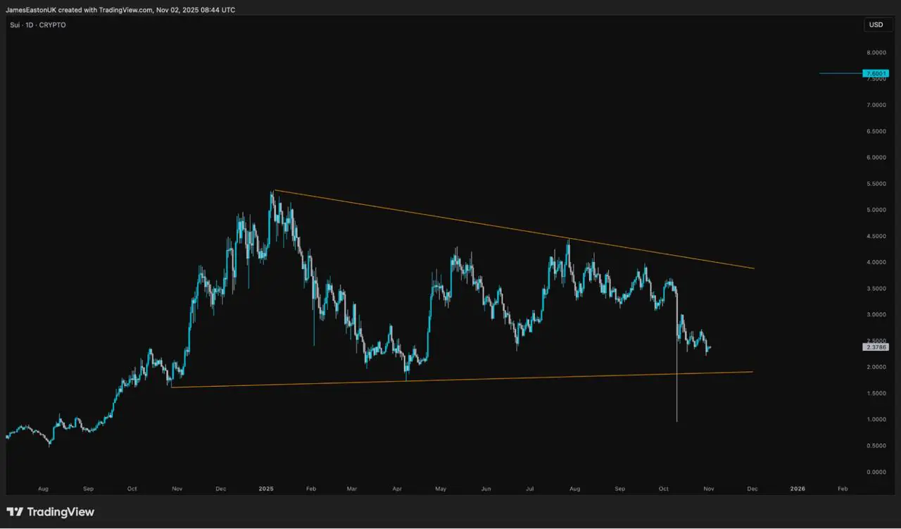 Sui 代å¸å¨å ³é®çªç ´åºåéè¿ç§¯èååã该代å¸å¨ 10 æä»½ä» 3.50 ç¾å çé«ç¹åè½åï¼äº 11 æ 3 æ¥å¨ 2.36 ç¾å éè¿çæ´ï¼æ£å¥½ä½äºä¸åè¶å¿çº¿ä¸æ¹ã交æå们æ£å¯åå ³æ³¨ 2.50 ç¾å çä»·ä½ãå¦æè¯¥ä»·ä½è¢«ææçªç ´ï¼åå¯è½å¸¦æ¥æ°ççªç ´ãæå¼è·¯å¾è³ 7.60 ç¾å ã