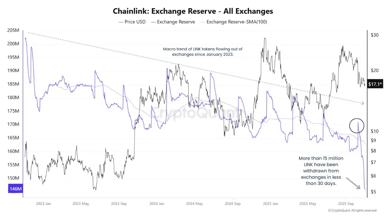 é¾ä¸æ´»å¨è¯å®äºè¿ä¸è¶å¿è¿å»ä¸ä¸ªæï¼è¶ è¿ 1500 䏿 LINK 代å¸ä»äº¤æææµåºï¼å¯¼è´å ¶ä¾åºéä» 1.8 亿æåå°å° 1.46 亿æã