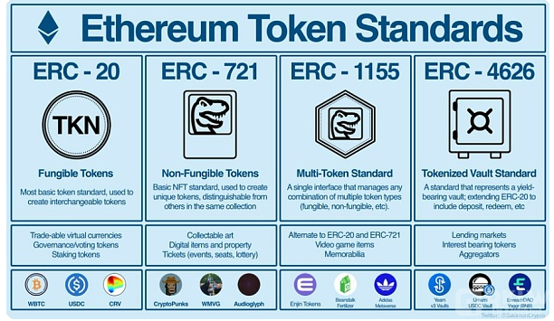 原生 ETH ..... ERC-20、721、777、1155、4626...... 随着每次 ERC 的增加,我们正在变得更加先进。每一种代币类型可以拥有更多的功能,每一个金钱 Lego 都将带来更多增值。