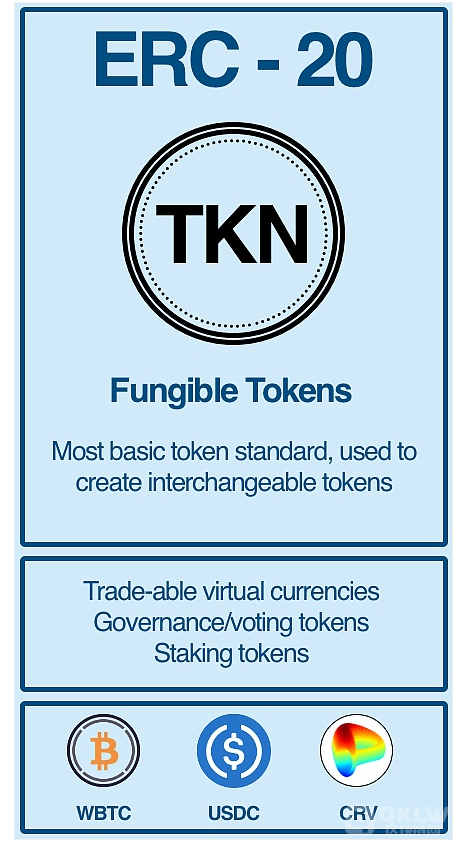 ERC-20 是最为基础的代币标准,代表着当前大多数有效代币。它包括了治理代币、ve-toke(投票托管代币)、稳定币等。(ETH 不是 ERC-20 代币。)