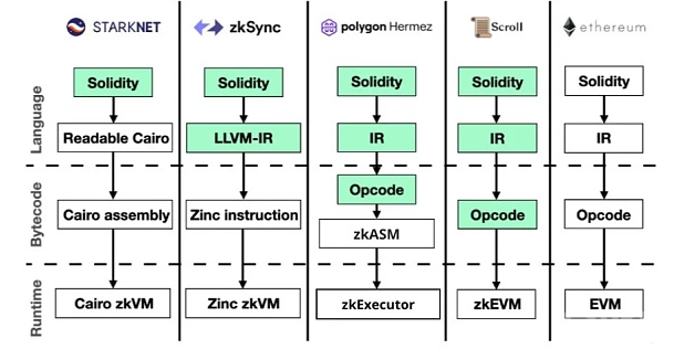 这些zkEVM采用以Solidity编写的智能合约代码,采用这种方法可以让代码更有效地运行,但它抛弃了很多以太坊现有的基础设施。例如,众所周知,geth客户端具有某些限制,这就是为什么像zkSync这样的团队已经用其他用Rust编写的软件替换了它。