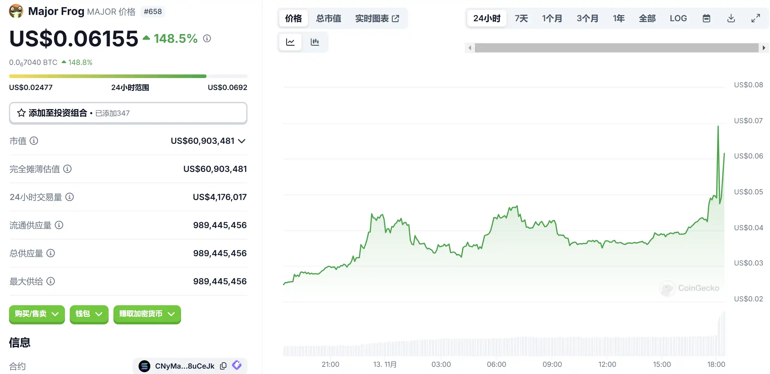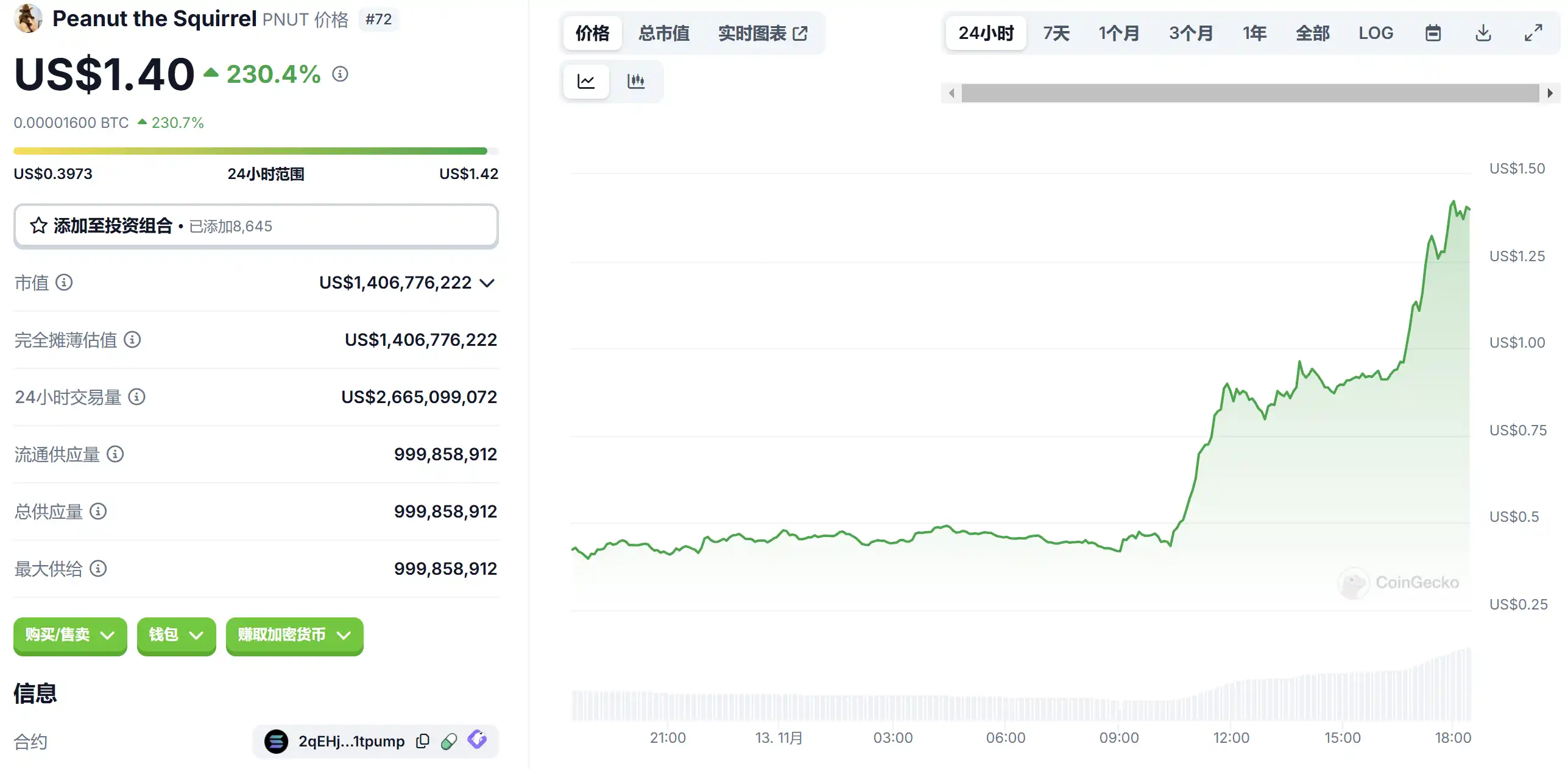 4.Pnut 市值超越 ONDO 成为市值第 80 大加密货币