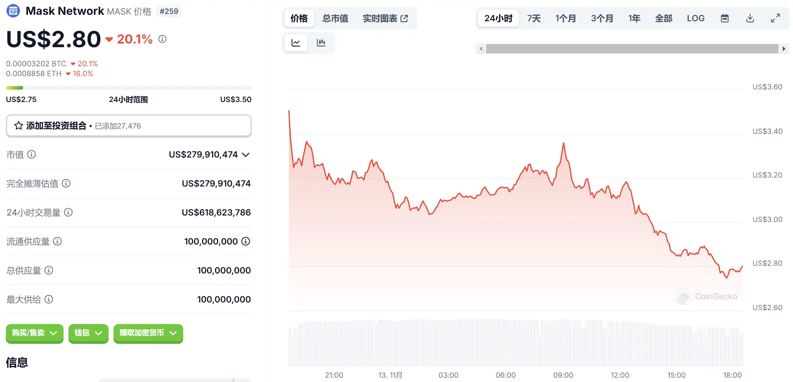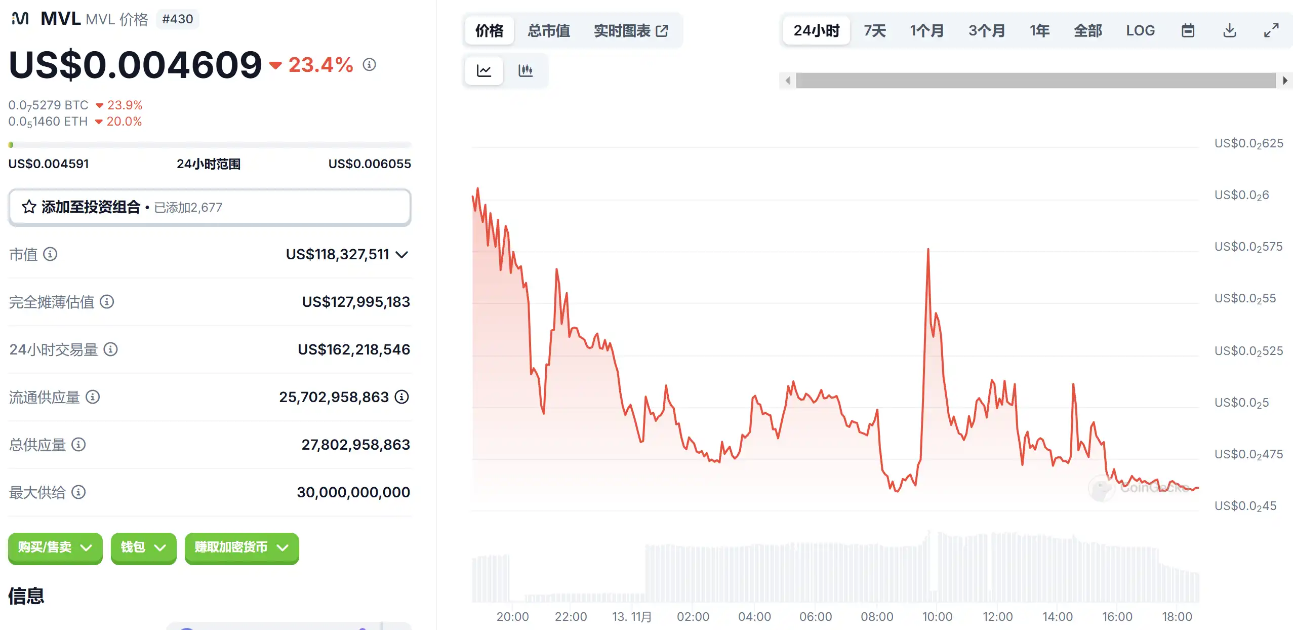 11 月 13 日代币波动情况,按交易量筛选并排列