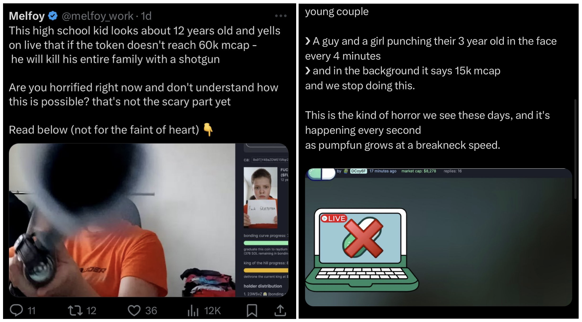 一名 12 岁的孩子称如果代币市值未达到目标他就用猎枪杀死全家。