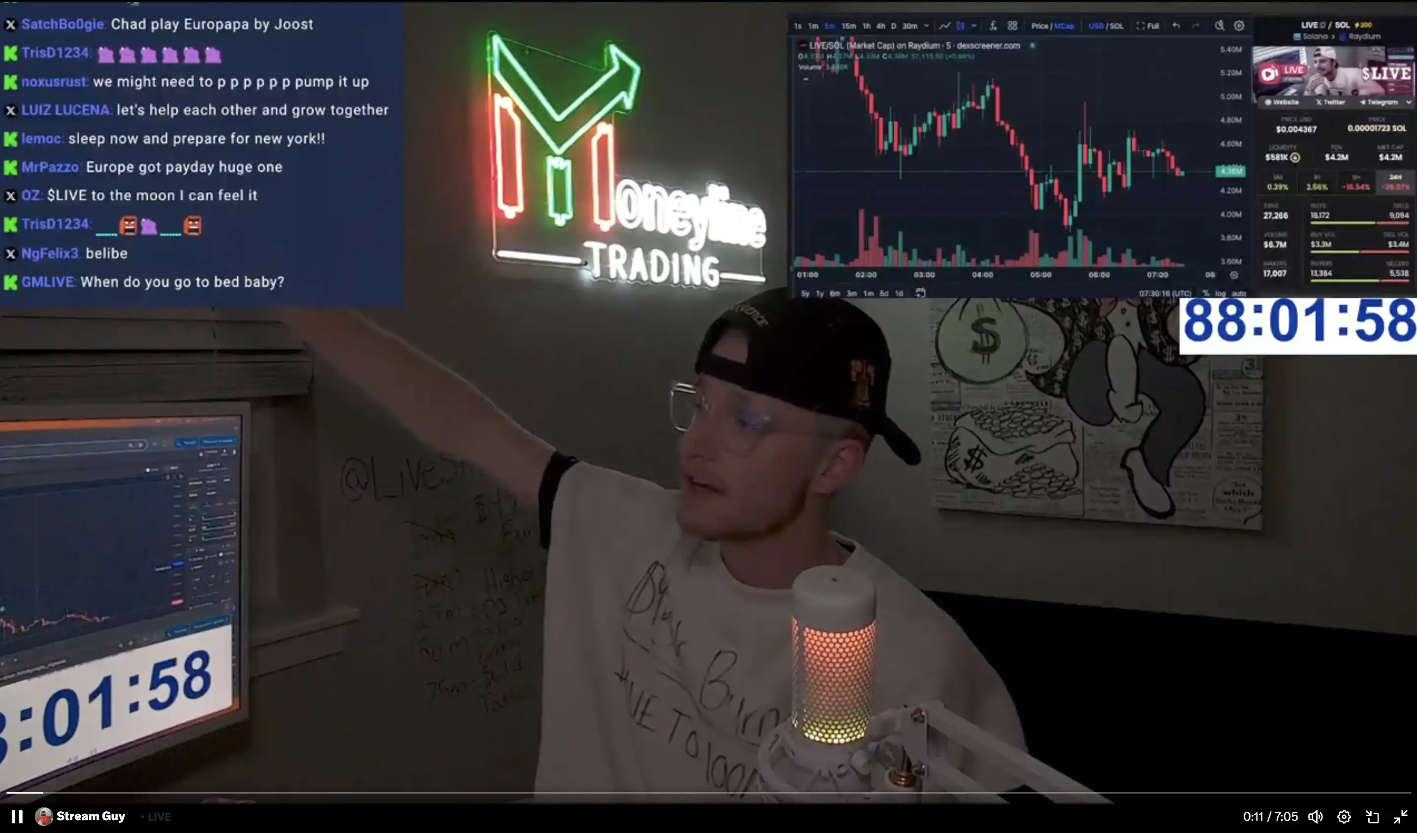 直到上周,Pump.fun 官方再次助推直播功能,11 月 22 日凌晨,一位北美失业青年在 Pump.fun 直播表示要等「自己代币(LIVE)的市值到达 100m 才下播」,该直播也成为 Pump 官方精选并置于首页。在内盘打满 10 万美元后,LIVE 代币一路上涨,后 gmony 等 KOL 参与至线上实时互动中,并最终将 LIVE 代币市值推至 2000 万美元上方。