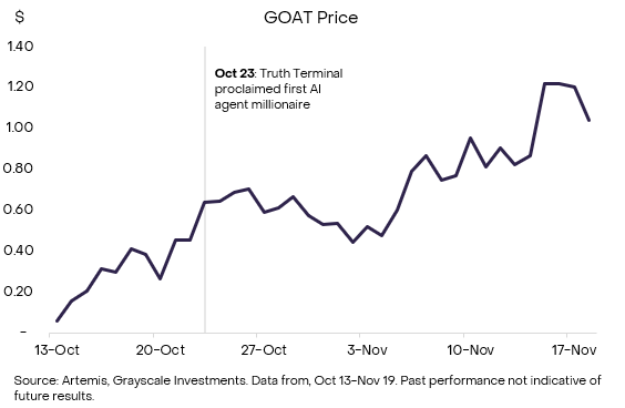 图表 1:自 Truth Terminal 推广以来,GOAT 表现尤为出色