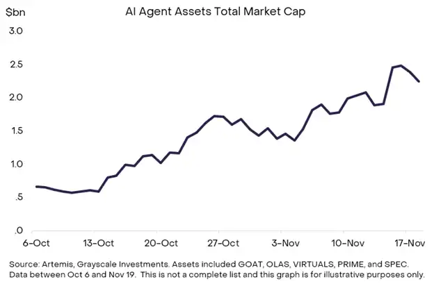 · Grayscale Research 表示,随着 AI 越来越多地利用区块链进行支付和其他金融服务,这一趋势将为多个加密市场领域带来积极影响。其中受益的包括低成本或高吞吐量的区块链(如 SOL、BASE 和 NEAR)、稳定币发行方(如 MKR)以及相关的去中心化金融 (DeFi) 应用(如 UNI)。