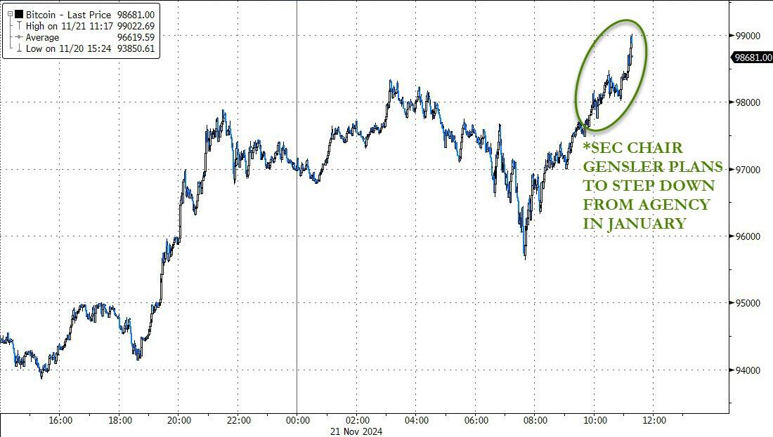 Gensler宣布离职后,投资者“弹冠相庆”,比特币上涨1000美元。