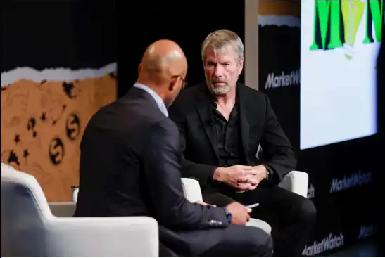 MicroStrategy 创始人 Michael Saylor,这家软件公司已经变成了一个比特币购买机器。图片来源:LIAM KENNEDY/ BLOOMBERG NEWS