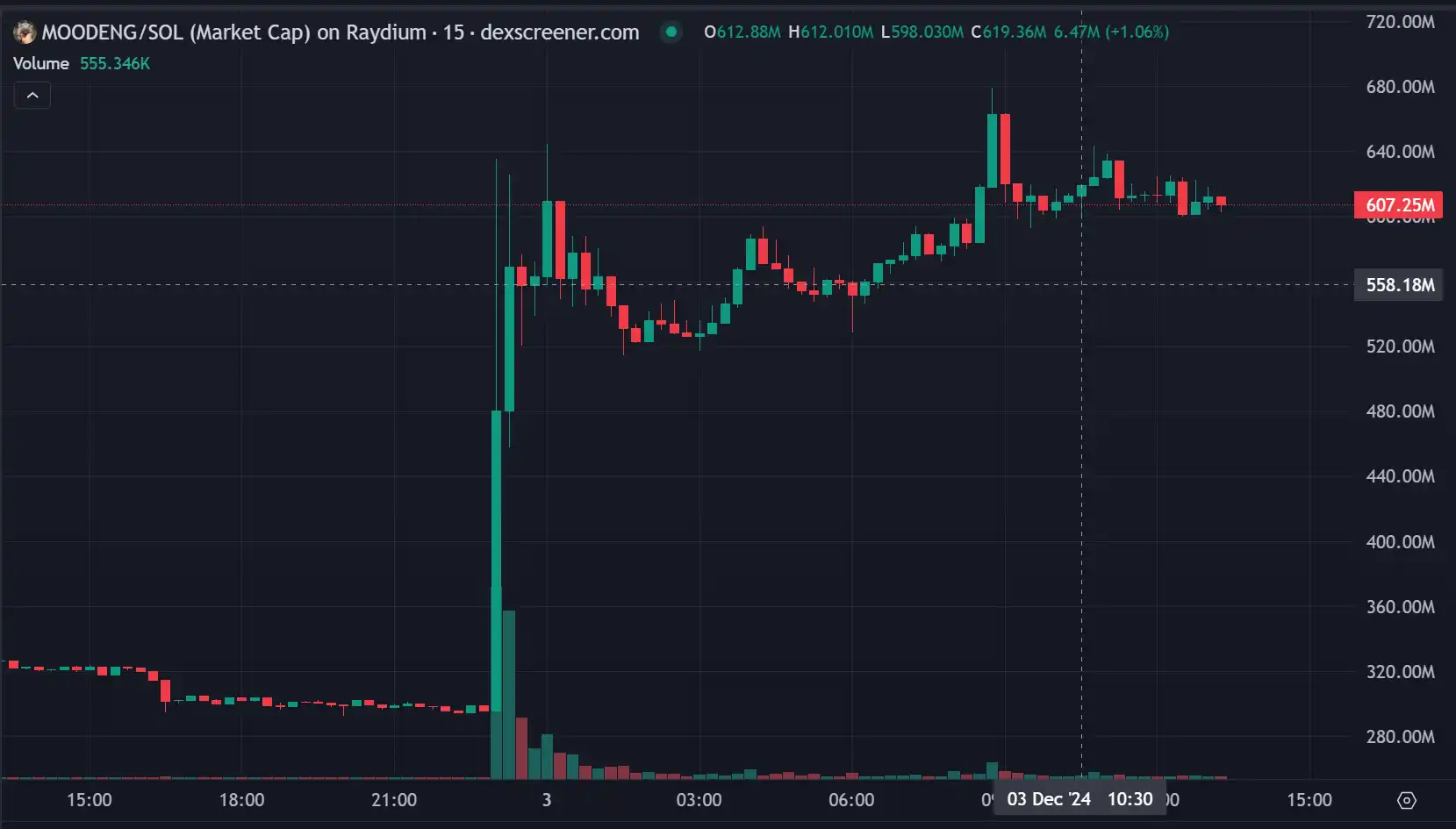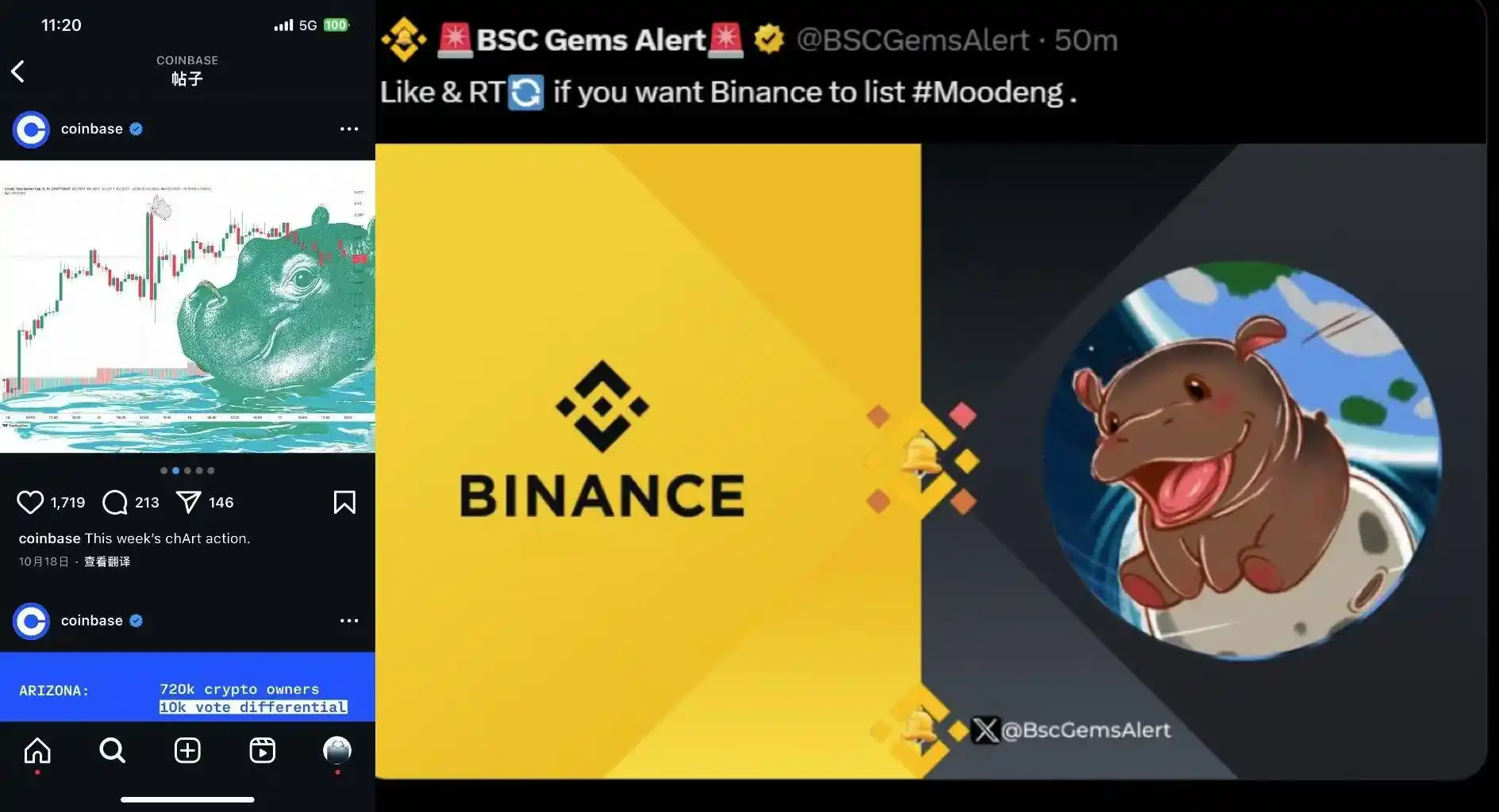 Moo Deng 币在上线 Coinbase 后引爆市场,今天早晨 8 点短暂突破 0.67 美元,瞬间掀起一波疯狂涨幅!目前价格稳居 0.61 美元,24 小时内涨幅惊人将近 90%,这让投资者纷纷大呼过瘾,Moo Deng 直接成为 solana 榜上疯狂飙升的代币明星,现在网友们对币安上线 moodeng 的呼声越来越高涨,带来了更高的热度。