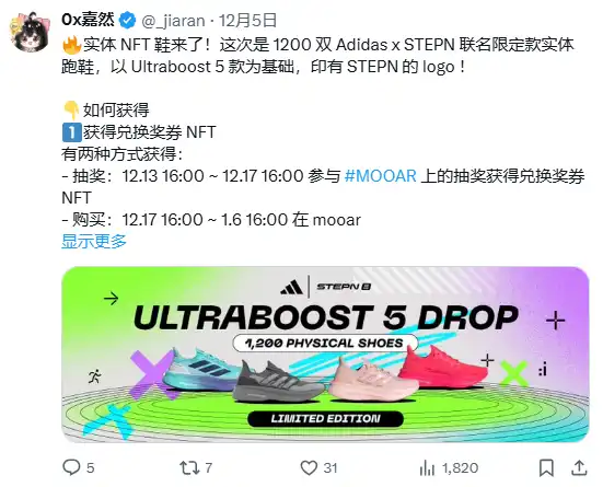 就在本周,FSL 还首次推出了与 Adidas 合作的品牌跑鞋,1200 双限定实体鞋免费包邮赠送给社区。