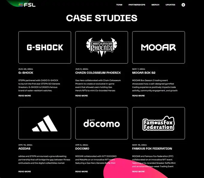 当你点开 FSL 的合作伙伴页面,首先映入眼帘的是一连串耳熟能详的国际品牌与重量级 IP:从亚瑟士(Asics)到 Line,从经典科幻巨作《攻壳机动队》到 Apple Pay,再到卡西欧(Casio)、阿迪达斯(Adidas)、Snoop Dogg、Docomo……这一张耀眼的伙伴名单,不仅是投向市场的信任通行证,更是 FSL 对多元文化、行业、场景深入渗透的最好证明。