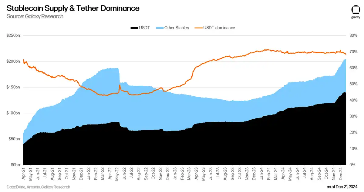 Tether 的市场份额预计将在 2025 年跌破 50%,受到收益型稳定币的挑战