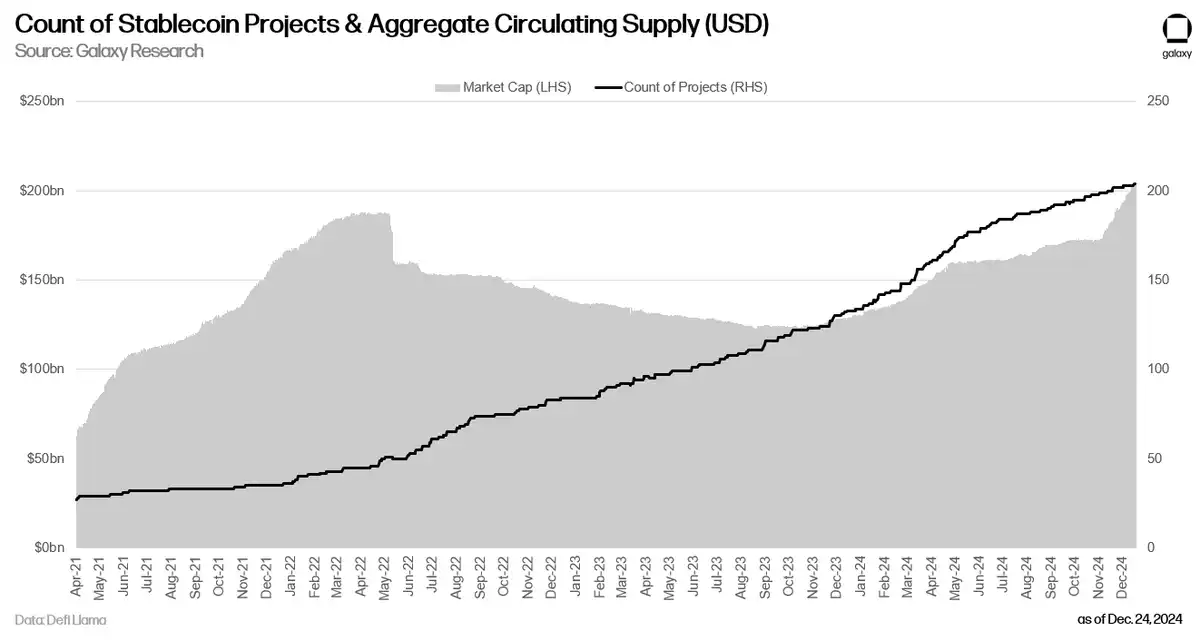 稳定币供应总量预计将在 2025 年翻倍,超过 4000 亿美元