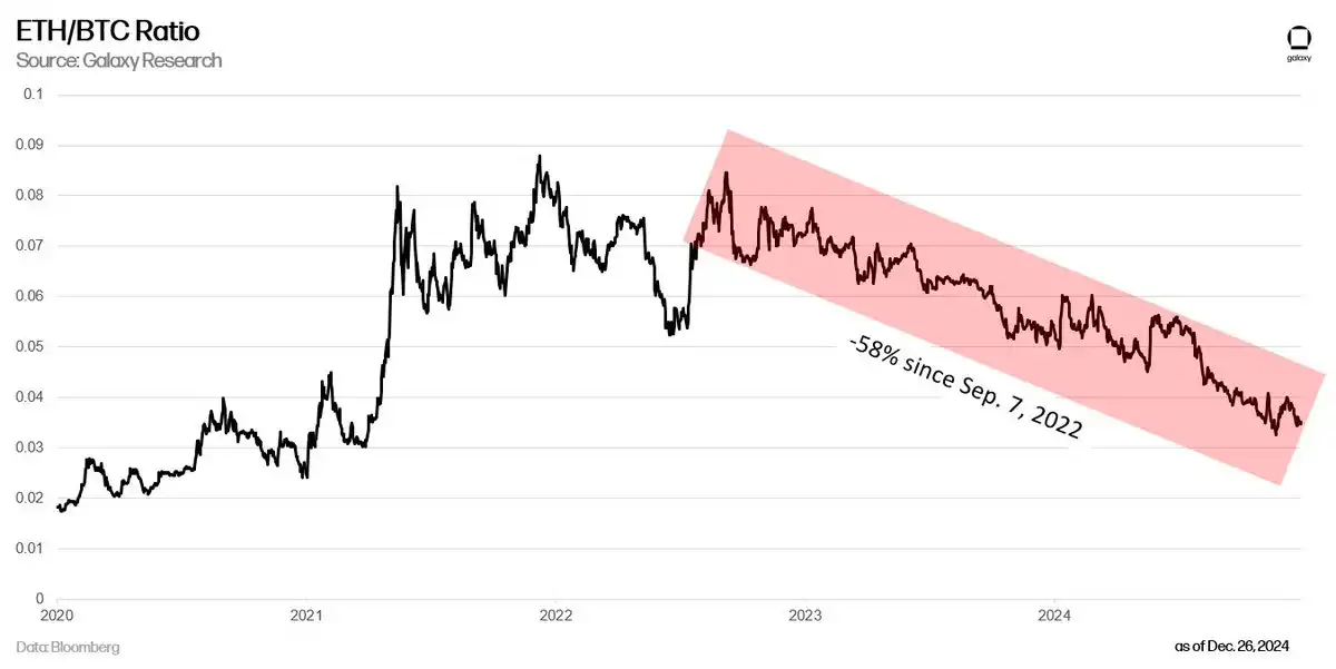 ETH/BTC 比率将在 2025 年跌至 0.03 以下,但年底将回升至 0.06 以上