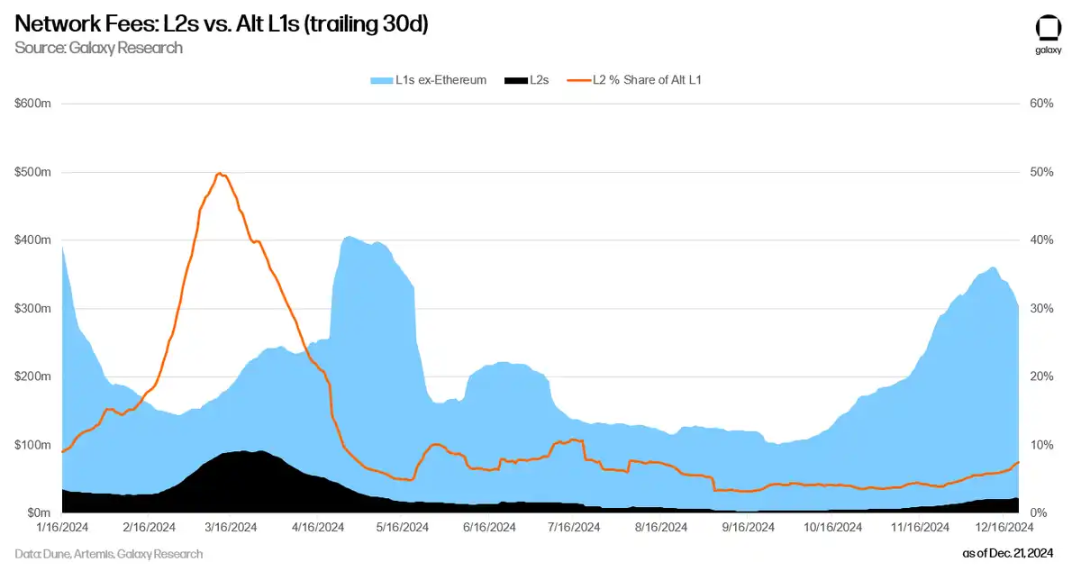 L2 的经济活动将在 2025 年超过其他 Alt L1 网络
