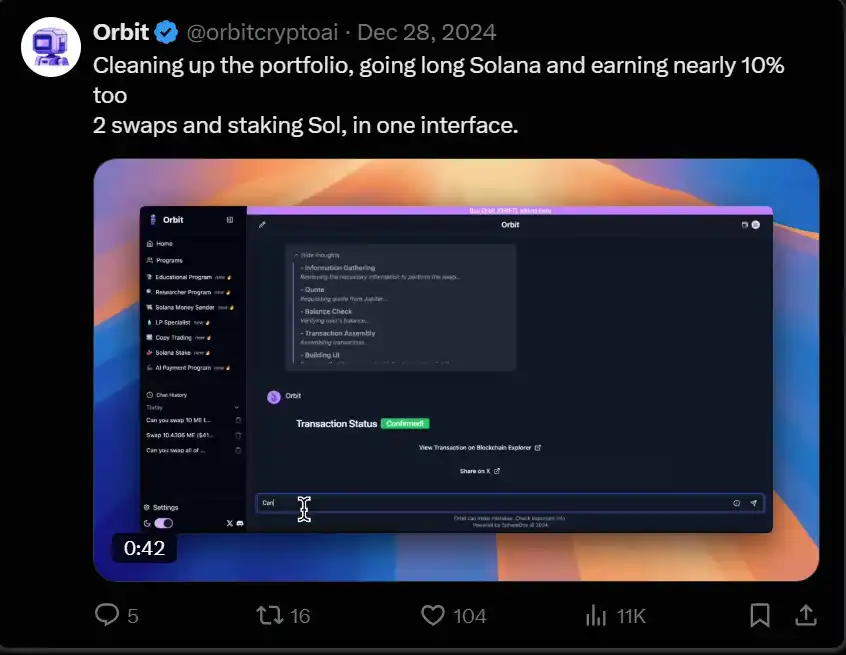 Neur 是第三个推出代币的项目,但由于其开源的特点,迅速在估值上超越了 Orbit。Neur 将自己定位为 Solana 的副驾驶,专为 Solana 生态系统设计。Neur 由 sendaifun 的 Solana Agent Kit 提供支持。
