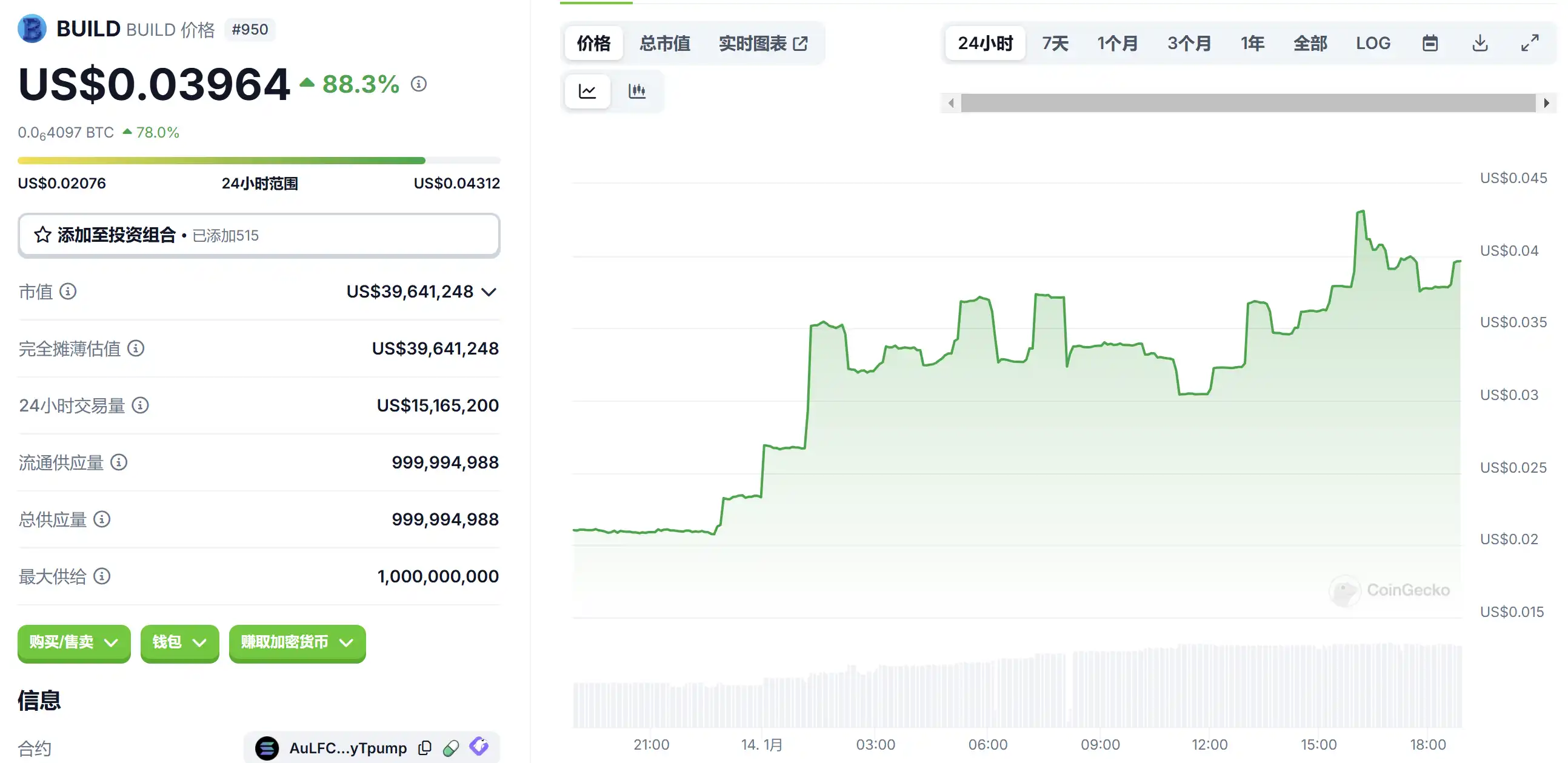 1 月 14 日代币波动情况,按交易量筛选并排列