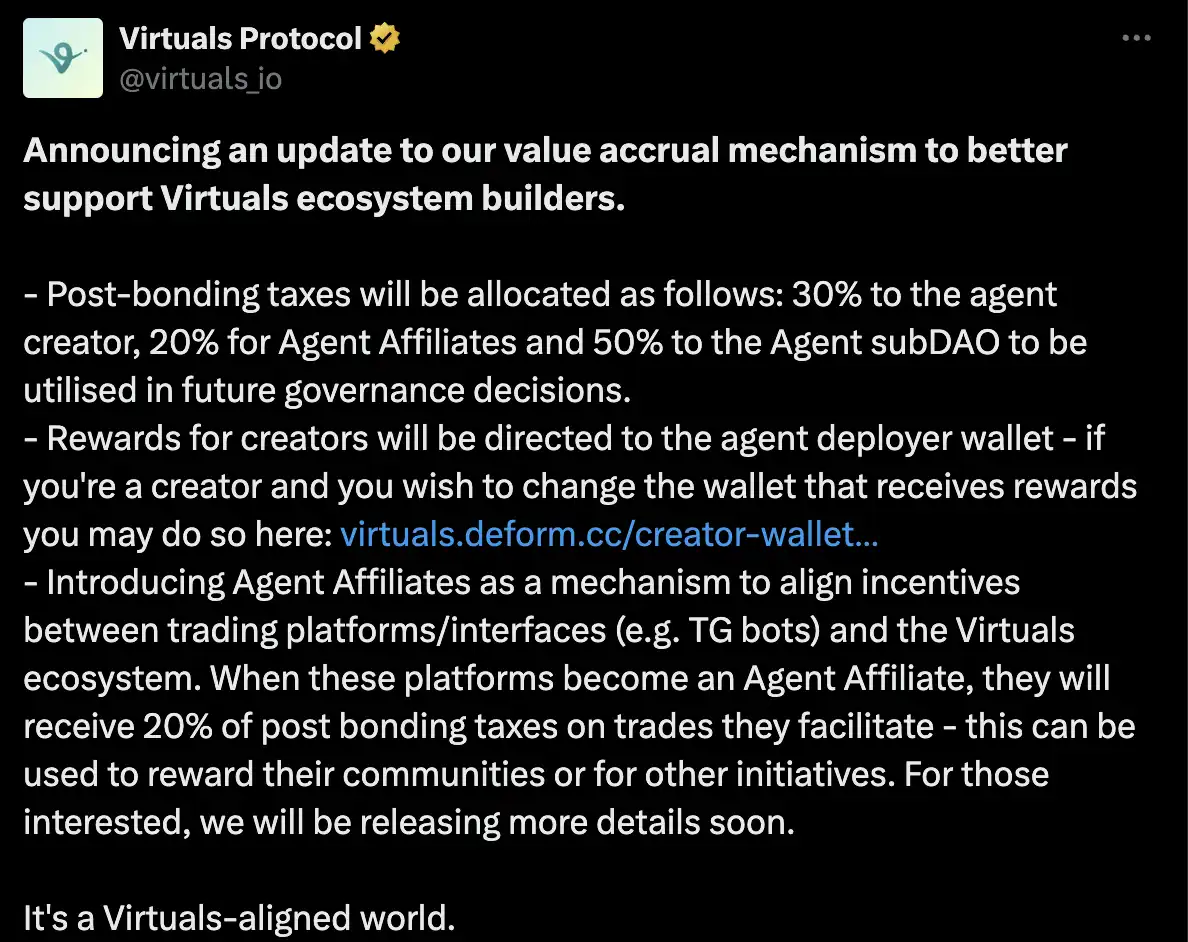 1. Virtuals Protocol 宣布更新价值累积机制