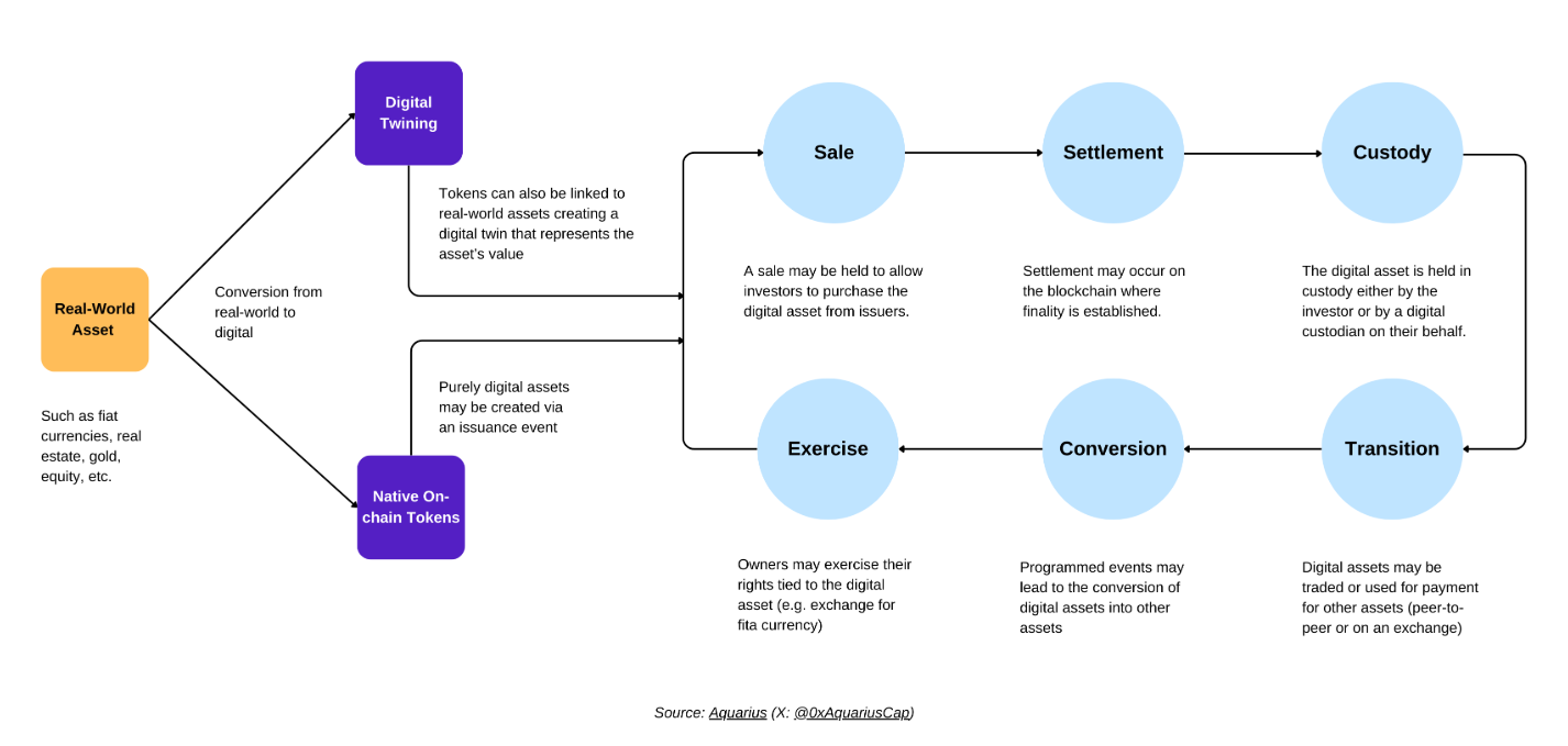 现实世界资产的代币化是指通过区块链或类似分布式账本以数字代币的形式表示链下资产的所有权。这一过程将资产的特性、所有权以及价值与其数字形式连接起来。代币作为一种数字持有工具,使其持有人能够主张对基础资产的所有权。