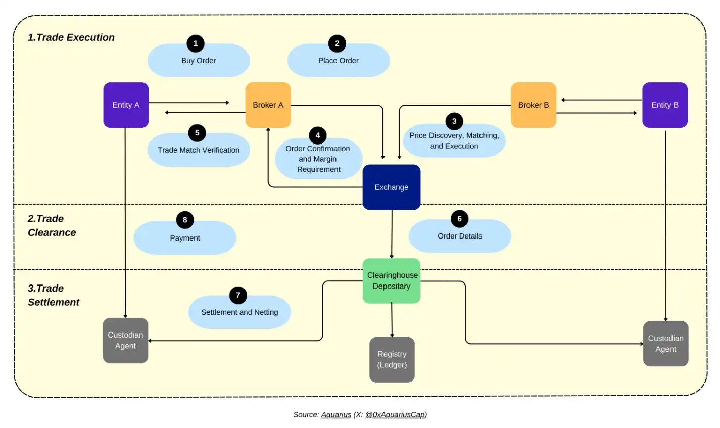 去中心化的数据结构使集成在区块链上的智能合约能够替代传统的中间机构来验证数据。智能合约还可以取代中央证券存托机构(CSD),自动化资产所有权转移、股息支付和利息分配等流程。