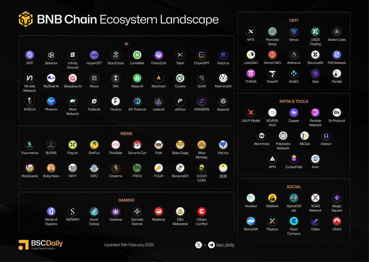 紧接着 2 月 11 日,BNB Chain 发布了 2025 技术路线图,其中披露 BNB Chain 将进行多项网络升级,最令投资者期待的莫过于 gas 费升级,支持多种代币支付 gas,也开通功能让项目方赞助用户 gas,这意味整个生态逐渐呈现出了不一样的面貌,CZ 的重点关注更是助推这一势头。