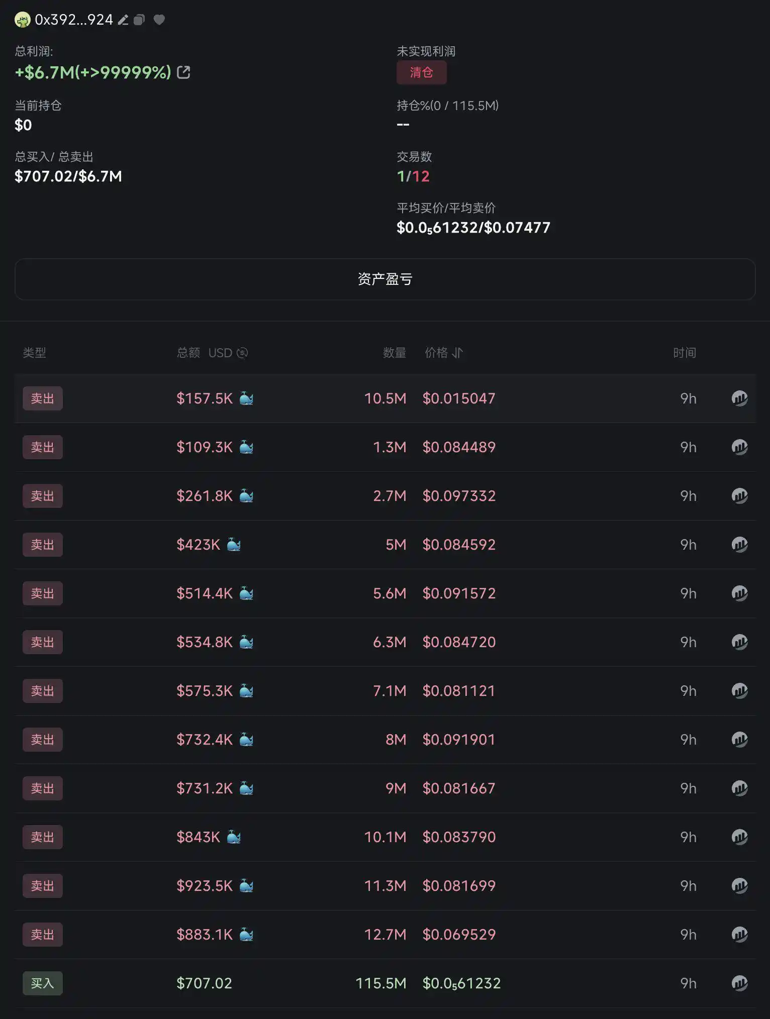 「到处都在发生 rug pull,他们将一个代币的市值推高到 4 亿美元——足以让人们相信这就是「那个真正的项目」,并伪造了所有数据:持有者、交易量,甚至创建了一个巨大的流动性池。然后,一旦散户因 FOMO 疯狂追涨…他们开始抛售,有些代币市值甚至在几分钟内从 4 亿美元崩溃到 3000 万美元,内部人士却带着超过 4300 万美元离场,最终留下投资者拿着毫无价值的代币。」Web3 研究员Pi指出。而据链上数据分析师余烬监测,有一个 BNBChain 上 Broccoli 创建者仅花费 1 BNB 获利 672 万美元,24 分钟创造 9517 倍收益。