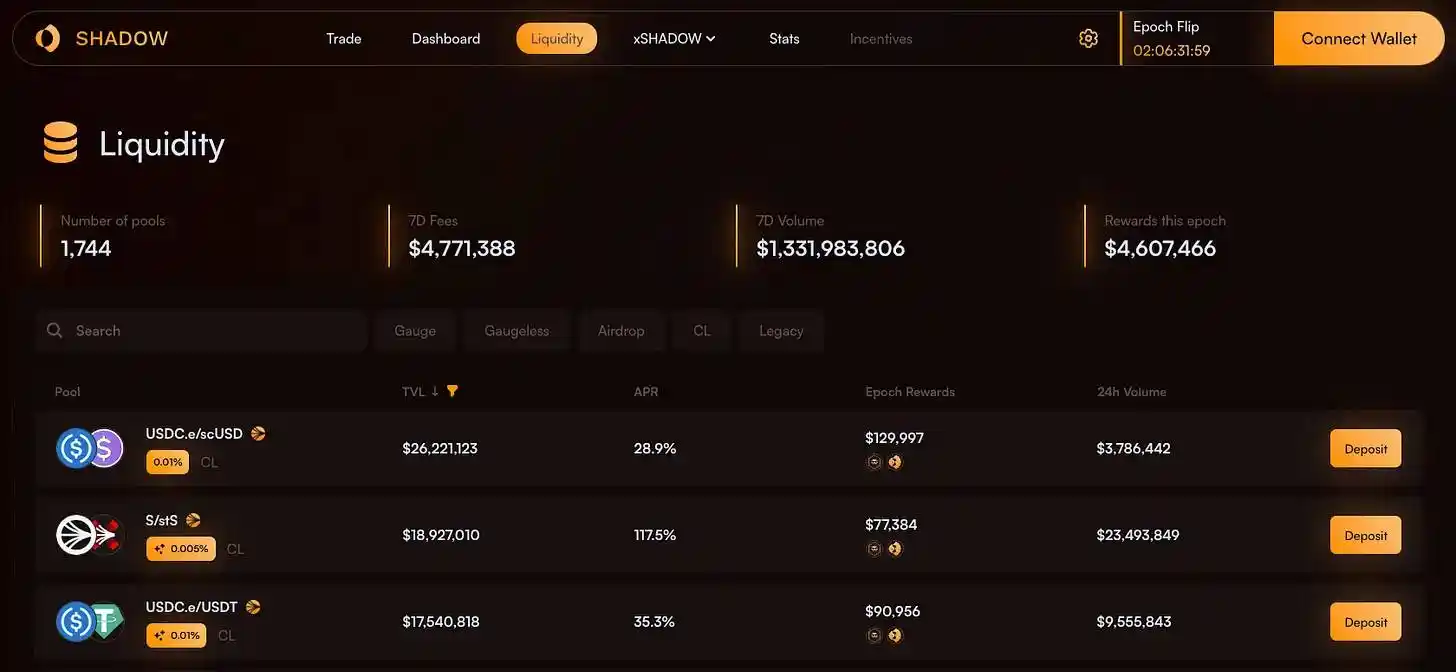 Shadow Exchange 是生态系统中的一个原生去中心化交易所 (DEX),提供了许多颇具吸引力的稳定币投资机会。其中,以下两个选项尤为值得关注: