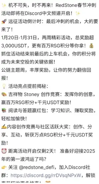 所以真正引发社区成员众怒的是—RedStone 的活动设计充满了高强度「PUA」式营销:通过不断发布任务吸引用户参与,制造一种「只要你够勤奋就能获得奖励」的假象,实则在门槛设定上设置隐形壁垒,让大量投入时间和资源的普通用户在最后一刻被排除在外。