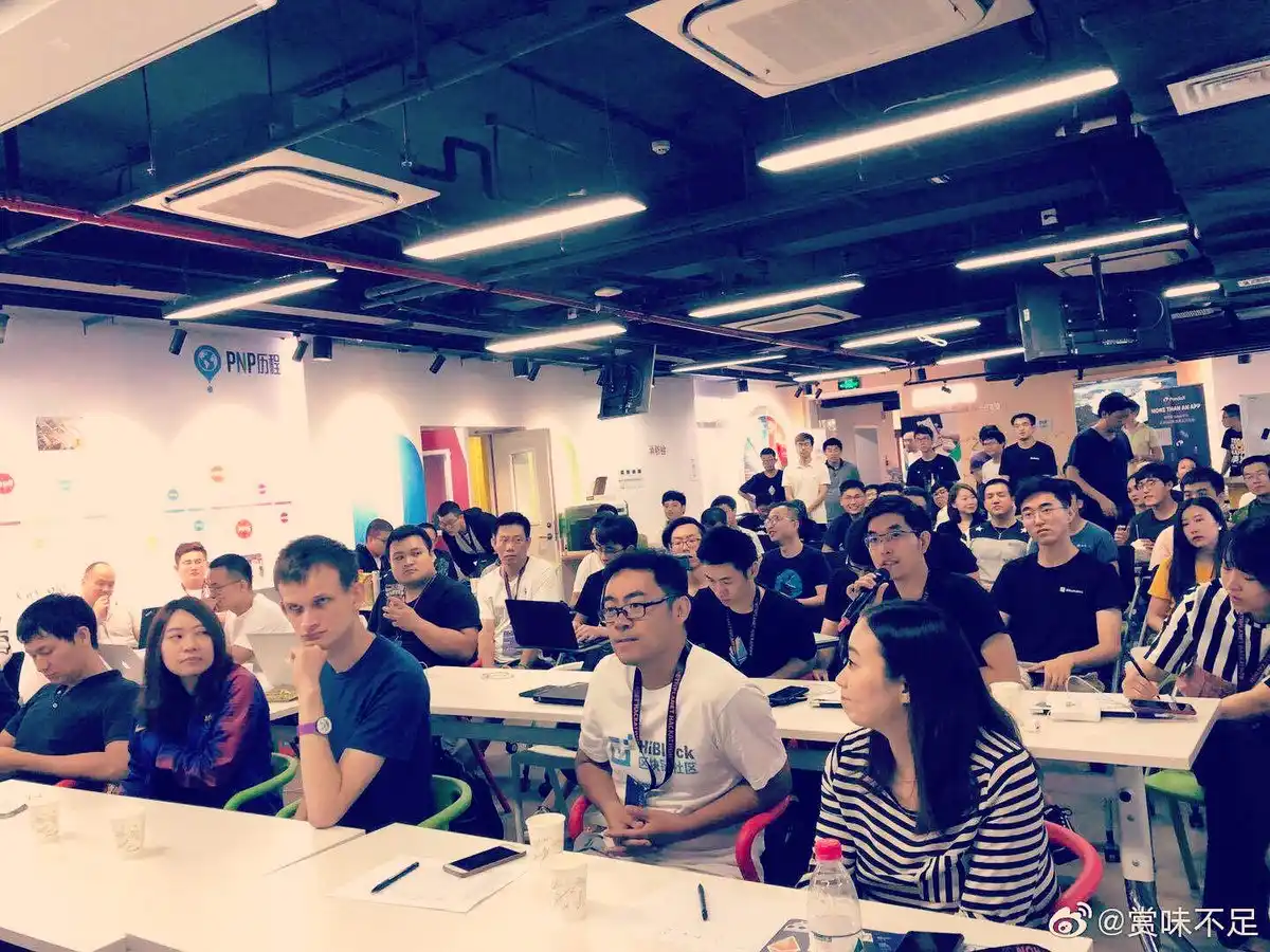 附图 2019 年以太坊在北京的黑客松评选日,坐在 vitalik 旁边那位即是 Co-EDs Hsiao-Wei @hwwonx