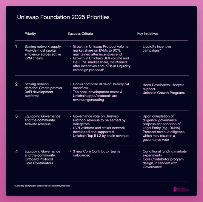· Uniswap Foundation:推动生态增长、治理及资金计划(如资助拨款、流动性激励)。