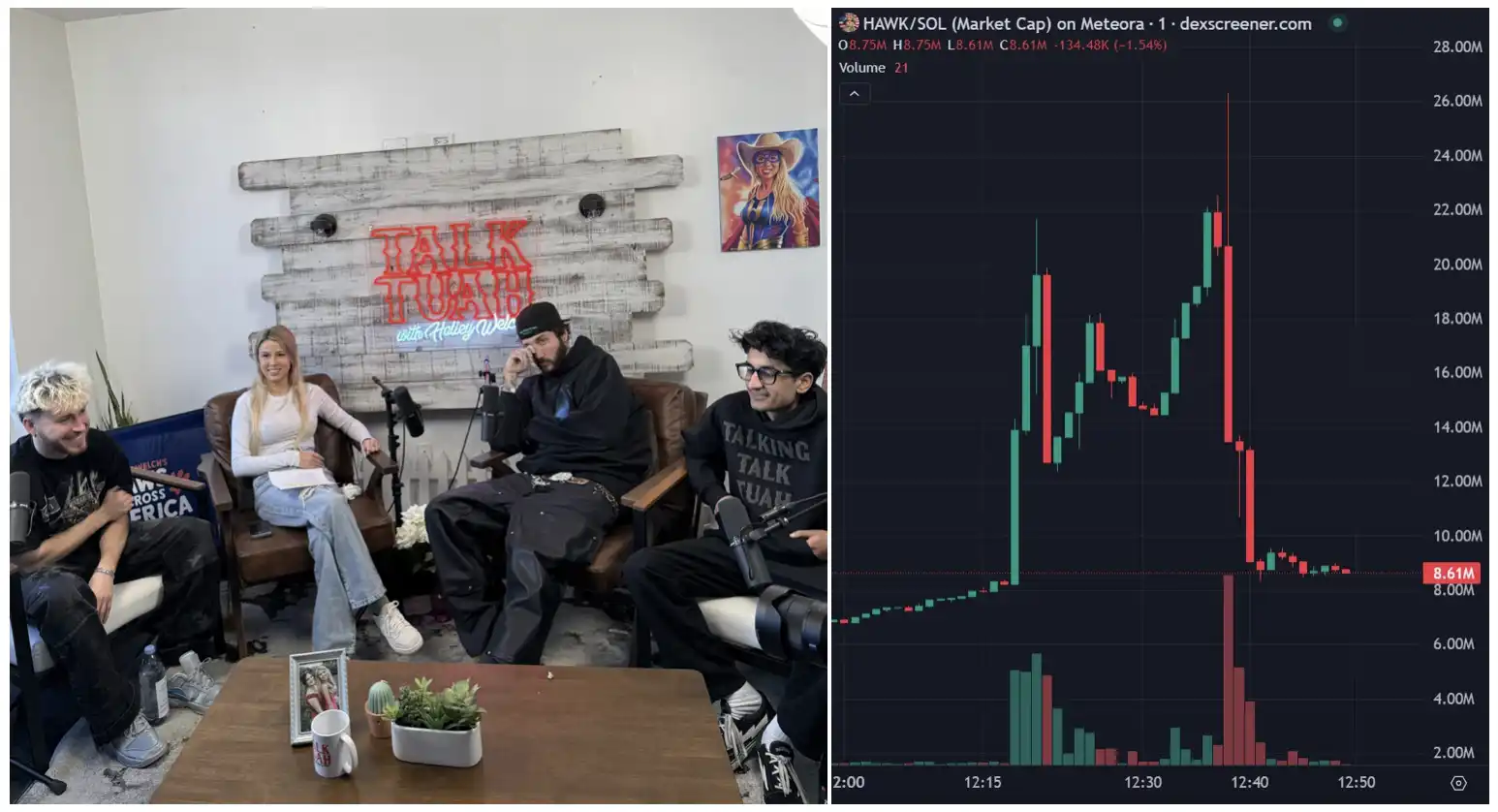 但这一切却变成一场闹剧,在 threadguy 眼里,这期节目的发布过程充满了失误和混乱,从内容泄露到本应取消的节目被错误发布,再到最终上线的决策,整个团队在各个环节都出现了严重的问题,$HAWK 也落得和众多名人 meme 币一样的下场。