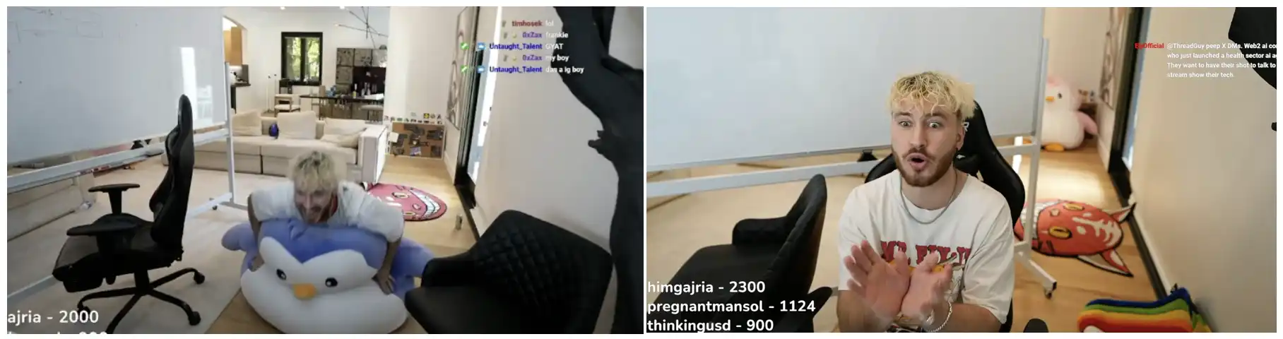2025 年 2 月,threadguy 和 Banks、Frank、Rasmr 等人真的去到了 Adin Ross 直播间,这也成为他们观看量排第二的采访视频,标题是《我教 Adin Ross 如何交易 Memecoins》。