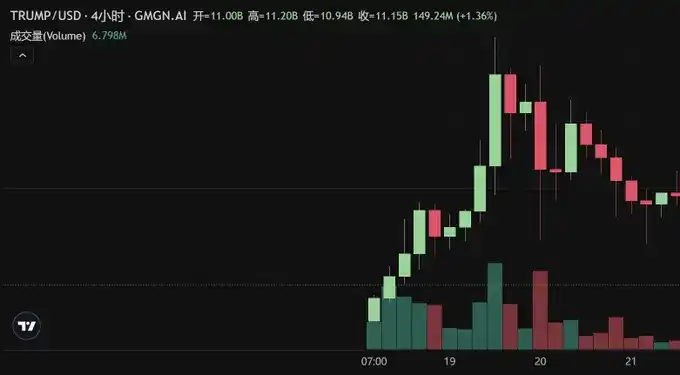 当 Trump 发币的消息一出来,市场立即拉盘,市值暴涨。尽管有人怀疑消息的真实性,但市场的反应快到根本来不及验证。