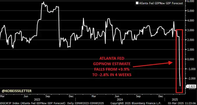 在贸易战的混乱中,我们看到经济增长预期大幅下滑。亚特兰大联储(Atlanta Fed)上周将 2025 年第一季度的 GDP 增长预期下调至低至-2.8%。因此,我们看到市场对降息的预期在上周急剧上升。
