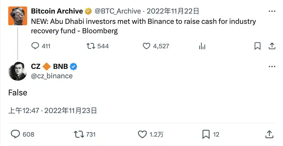 不过,在媒体曝出此消息后,CZ 迅速在社交媒体上否认 Binance 曾在阿布扎比筹资,仅简短回应称该报道「False(完全不实)」。