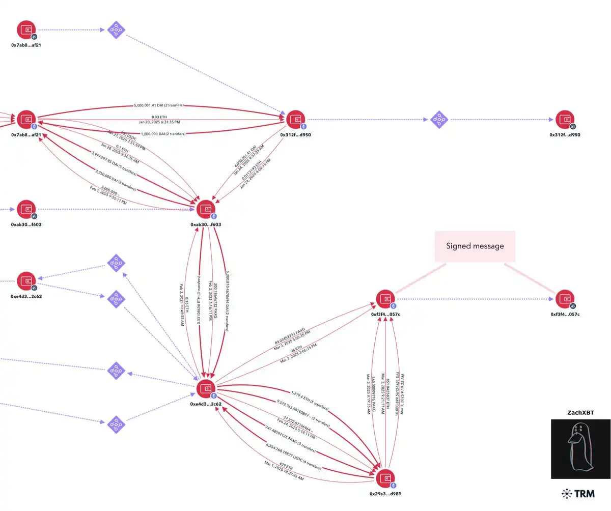 0x7ab 还在 2025 年 1 月直接从另一个钓鱼受害者那里收到了 1.71 万美元,之后他的钱包在本月被追踪到。
