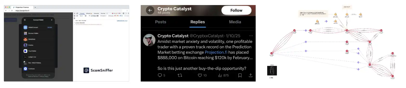 2025 年 1 月,Hyperliquid 巨鲸的一个公共地址被设置为 projection[.]fi 钓鱼网站的收款地址。
